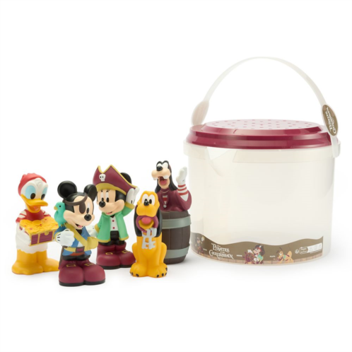 Yo HoAvast, me hearties! Here's a whole crew of pirate pals to treasure for bathtime or beachside. Mickey, Minnie, Donald, Goofy and Pluto set sail in a seaworthy pail that's made for both play and storage. Inspired by Disney's classicPirates of the Caribbeanattraction.