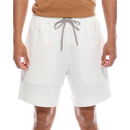 Introducing the Theory Allons Short in Ivory, a must-have addition to any man's wardrobe. Crafted with luxurious terry cloth fabric, these shorts offer both style and comfort. Featuring an elastic drawstring waist, side seam pockets, and a back right pocket, these shorts are as practical as they are stylish. The inseam measures approximately 7.5 inches with a 14-inch rise, making them the perfect length for any occasion. Made from 100% cotton, these shorts are easy to care for and maintain. Whether you're dressing them up or down, the Allons Short is sure to become a staple in your closet. Available in a range of sizes, these shorts are designed to fit perfectly. Elevate your summer wardrobe with the Theory Allons Short in Ivory.