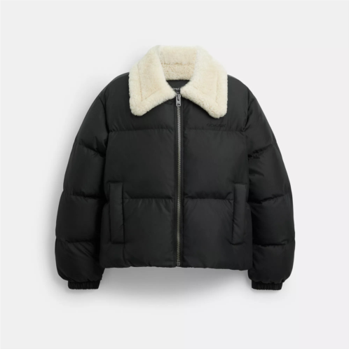 100% polyester Collar - 100% shearling lamb Lining - 100% polyester Fill 1 - 90% down 10% feathers Fill 2 - 100% polyester Zip closure Slip pockets Length - 23 1/4 Spot clean Model is 5'10 (178cm) chest 31 (79cm) waist 24 (61cm) hips 35 (89cm) and wears a size S Style No. CCA26 | Coach Outlet Puffer With Shearling Collar - Black, Size - X-Small