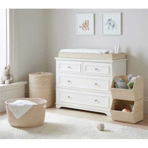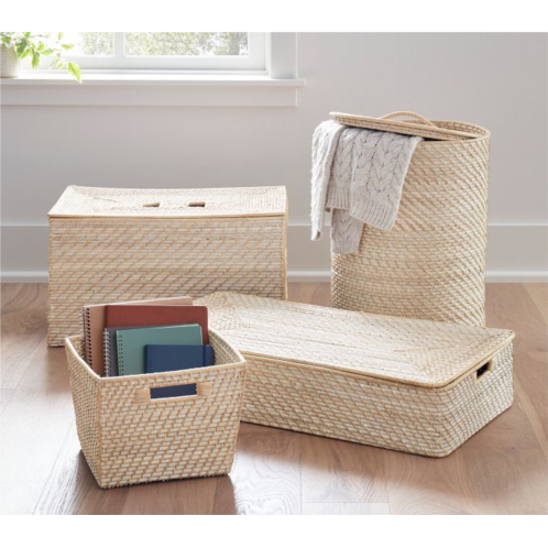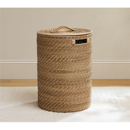With a classic drum shape and lid, our Quinn woven hamper keeps everything from clothing and linens to toys and gear stylishly contained. Slight variations in the rattan’s golden finish and natural texture are hallmarks of time-honored weaving techniques.