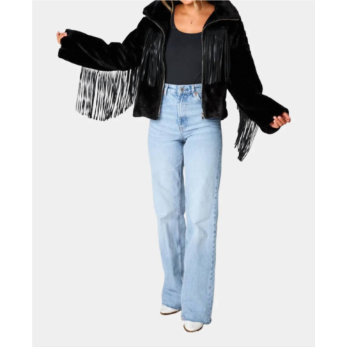 [US] BUDDYLOVE skylar fringe faux fur jacket in black
