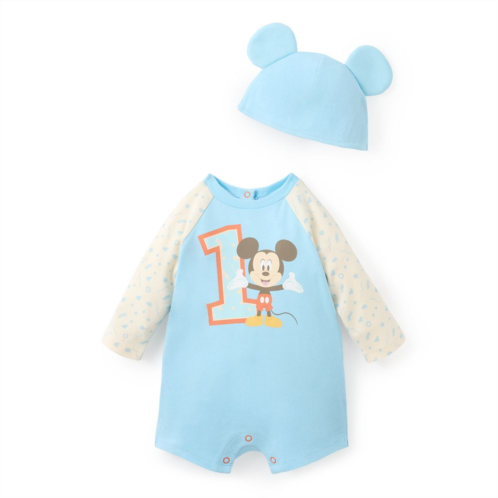 Mickey Mouse is ready to celebrate with this baby bodysuit set perfect for fun festivities. This soft cotton bodysuit features baby Mickey and the number ''1'' to commemorate their first birthday. The coordinating cap features 3D ears to make this set even more adorable.