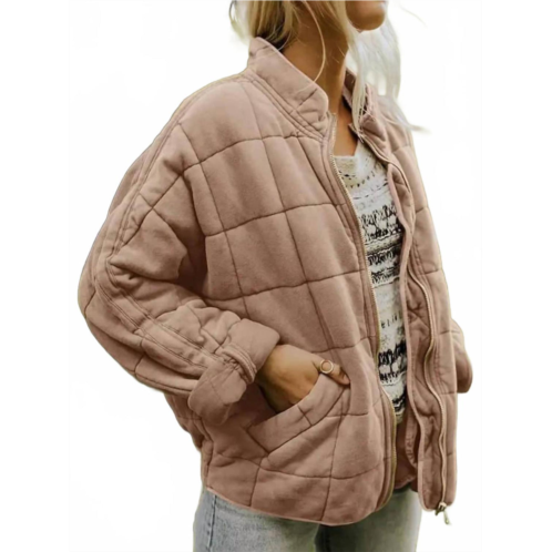 A jacket so versatile you can literally wear it with anything.Stay warm and stylish this fall with the Quilted Winter Jacket by Sweet as a Peach, designed in a versatile taupe hue ideal for Thanksgiving travel. This women's jacket features long sleeves and a chic mockneck, crafted from comfortable cotton material for a solid, casual fit. Equipped with a convenient zip closure and practical pockets, it's perfect for the streetwear trend. Hand wash for best results.