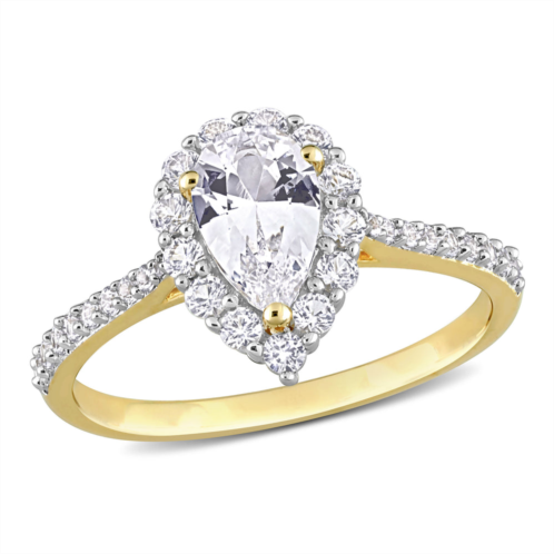 [US] Mimi & Max 1 7/8 ct tgw created white sapphire halo teardrop ring in yellow plated sterling silver