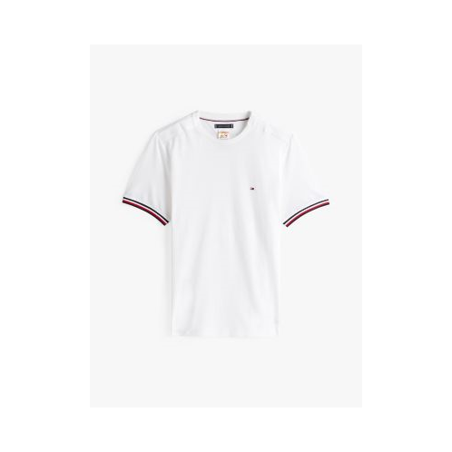 Tommy Hilfiger men's T-shirt. Update your essentials with this understated T-shirt, made from pure cotton and detailed with our Hilfiger signature stripes at the cuffs. Part of our Adaptive Collection, designed for ease of dressing in classic Tommy style.