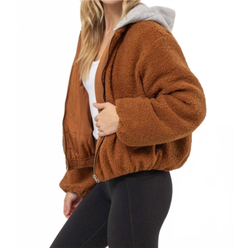 [US] HYFVE hooded sherpa puffer jacket in brown