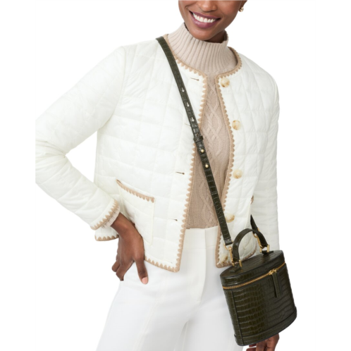 Introducing the J.McLaughlin Danica Jacket, a stylish addition to your outerwear collection. This jacket in egret white is the perfect combination of traditional sportswear with stand-out fabrics and prints. It features design details like back pockets and measures approximately 21 inches from shoulder to hem. Made from 100% nylon with a fill of 100% polyester, this jacket is both fashionable and functional. Simply machine wash cold and line dry for easy care. Imported and available in the women's clothing outerwear coats-jackets category.