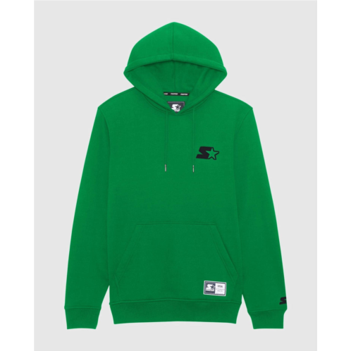 Introducing the Men's Jimmy Pullover Hoodie by Starter, a must-have in vibrant green for the modern man. This long sleeve hoodie offers a cozy fleece interior and a practical front kangaroo pocket, perfect for game day or celebrating St. Patrick's Day. Crafted from a 60% cotton, 40% polyester blend, it features a pull-on closure and iconic Starter logo embroidery on the left chest and sleeve cuff. Embrace the Y2K trend with this graphic pullover, ideal for the spring season.