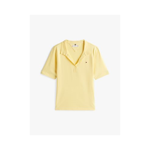 Tommy Hilfiger women's polo. Our classic polo is made with a premium pique weave that gives it a balance of crisp structure plus a soft feel. Its stretch cotton construction lends it a lightweight softness that's smooth and comfortable for all-day wear. Part of our Adaptive Collection, designed for ease of dressing in classic Tommy style.