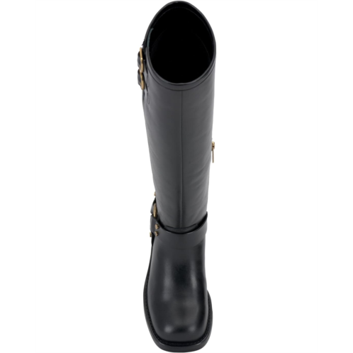 Kick around in the Kaydin engineer boot. The knee high shaft has the traditional ankle harness with O-ring detail and adjustable double buckle finishing at the top of the shaft. The heel has a metal rand detail, a soft square toe, and rubber outsole. Unlike a traditional moto boot, there is inside zip for easier entry.