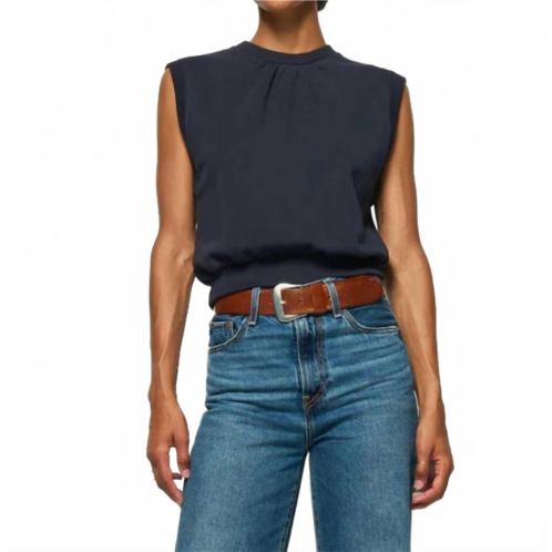 Stay warm and stylish in this versatile and effortlessly cool knitwear staple. Wear it alone or layered, it's the perfect sweater for the season and you'll wish you had it in every color.Elevate your casual wardrobe in the captivating Night Sky hue. Sleeveless design features contrast ribbing at the neck and armholes, complemented by a cropped, controlled hem and feminine shirring at the neckline. Composed of 100% Peruvian Cotton. Naturally hypoallergenic, breathable, and soft. Crafted in Peru. Pull-on with signature gold snap button detail. Machine washable with a recommendation to air dry or use a low setting.