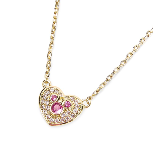 Accessorize your look with the sparkle of this Mickey Mouse icon heart-shaped necklace with dazzling cubic zirconia stones with 14k gold-plated titanium. Fitted on an adjustable chain, this subtle and elegant piece showcases your love of Mickey with every wear.
