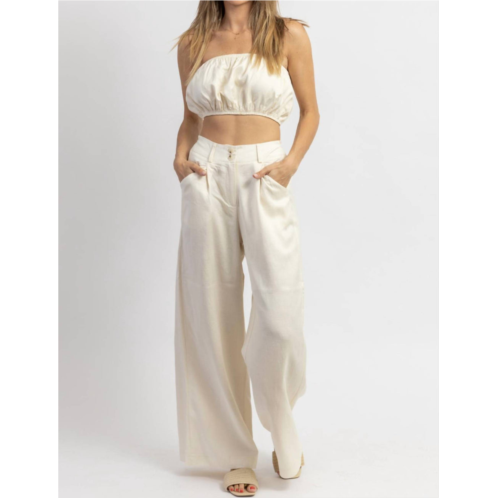 A match made in heaven. This two-piece set is so cute, you'll wish you could wear it out of the house! Did we mention how comfortable it is, too? You may want two sets!Sold together, straight leg pants, bubble tube top, zippered back, linenlike. Self - 60% rayon, 40% linen. Lining - 100% polyester. The model is wearing a size small. Height 5'8, and the dress size 2.
