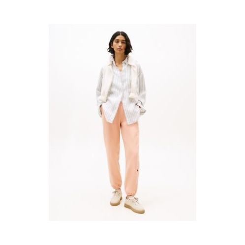 Tommy Hilfiger women's pant. Ideal for fall-to-spring weather wear, our medium-weight sweatpants are made from cotton-blend fleece that feels soft against the skin. Designed with slash side pockets, an elastic waistband with an internal drawstring, and elastic cuffs, this sporty pair features our embroidered logo at the leg.