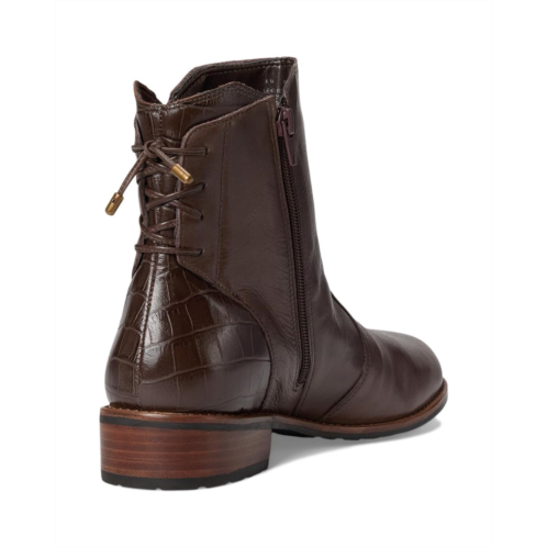The David Tate Maestro boot features a waterproof soft calf leather upper and a removable contoured rubber insole. Metal nail head studs, leather laces on the back, and leather croc trim make the Maestro stylish, comfortable, and supportive. A leather welted rubber outsole provides shock-absorbing cushioning for all day comfort.