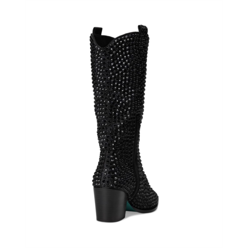Add some bling to the classic cowboy boot style with the Blue by Betsey Johnson Randy western boot. Whether you're heading to a country concert, a festival, or just looking to make a statement, these sparkly boots are a perfect choice. This snip toe pair has a mid-calf profile with allover studded design and side zipper for easy entry.