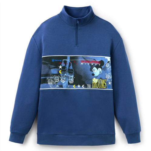 Mickey Mouse asThe Sorcerer's Apprenticecasts a spell of warmth and comfort with the design of this quarter-zip pullover right in time for the 85th Anniversary ofFantasia. Lined with a fleece interior, it features screen art with imagery from the enchanting film and embroidered appliques of stars, moons, and the iconic Brooms that were bought to life with Sorcerer Mickey Mouse's wand.