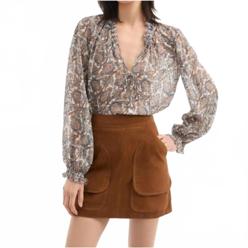 [US] Veronica Beard hickory silk blouse in dove multi