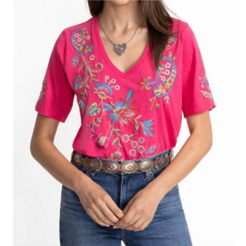 [US] Johnny Was karime raw hem vneck tee in raspberry sorbet