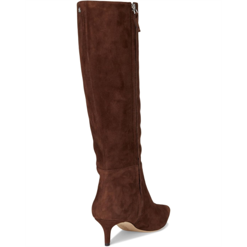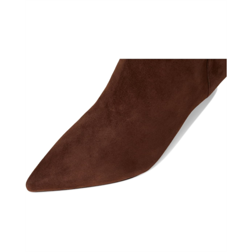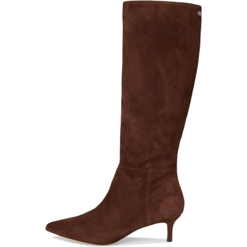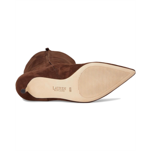 Crafted with velvety suede, the Lauren Ralph Lauren McKay Suede Tall Boots Heel features a streamlined, pointed-toe silhouette set on a slender kitten heel. An 'LRL' logo on the side completes the look. The knee-high boots feature smooth leather upper, cotton lining, and Memory foam insole.