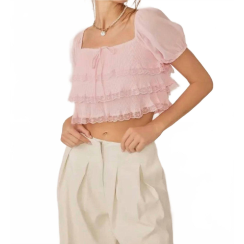 The perfect crop top for those warmer weather days.Embrace minimalist elegance with the Lindsay Square Neck Top by Idem Ditto in a charming soft pink hue. This women's crop top features an exquisite accordion pleat texture and short sleeves, perfect for both vacation and Easter gatherings. Boasting a stylish square neckline, it offers a pull-on closure for easy wear. Designed for spring, simply tumble dry for care.
