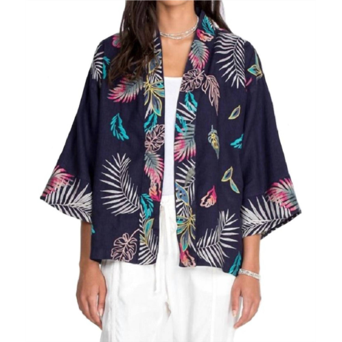 [US] Johnny Was kaluhi linen cropped kimono in deep navy