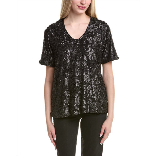 Introducing the Johnny Was Bradley Blouse, a stunning addition to your wardrobe that exudes eclectic boho vibes with a vintage flare. This black sequin blouse features a gently scooped neckline and short sleeves, perfect for a touch of glamour. Made from 100% polyester, this blouse measures approximately 26.5 inches from shoulder to hem. Pair it with your favorite bottoms for a versatile and chic look. Dry clean only. Imported.