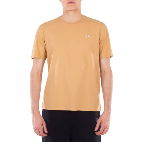 Maison Kitsune Men's Tops. Fashion category - T-Shirts & Henleys. SKU - LM00110KJ0008-CHAMOMILE. Color - Chamomile. Maison Kitsune Chillax Fox Patch Cotton T-Shirt. This jersey t-shirt features a classic cut with short sleeves, a rib-knit trim crewneck, reinforced seams at the sleeves and waist, and an embroidered Chillax patch on the chest. 100% Cotton.