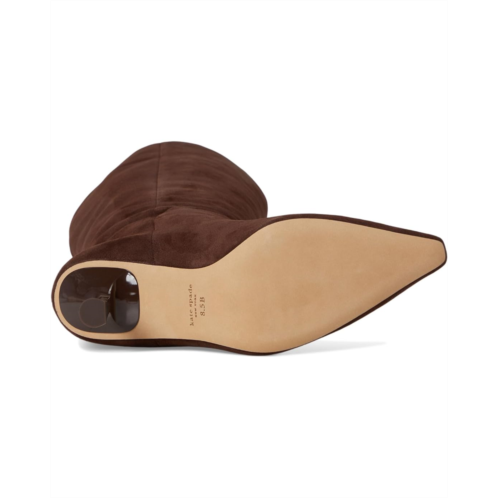 The Kate Spade New York Adele Suede Tall Boots are a sleek, leg-lengthening statement designed with rich suede uppers. They feature a pointed toe and a kitten heel that adds both height and elegance. The pull-on design ensures a smooth silhouette, while the Spade flower detail at the back offers a signature flair.