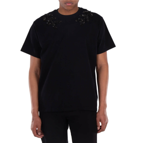 Burberry Men's Tops. Fashion category - T-Shirts & Henleys. SKU - 8064392. Material - Cotton. Color - Black. Burberry Embellished Crystal Oak Leaf Crest Cotton T-Shirt. This cotton jersey T-shirt is cut for a relaxed fit and embellished with light-catching crystals that create our oak leaf crest, a reimagined version of our archive emblem.100% cotton; Trim - 98% cotton, 2% elastane.