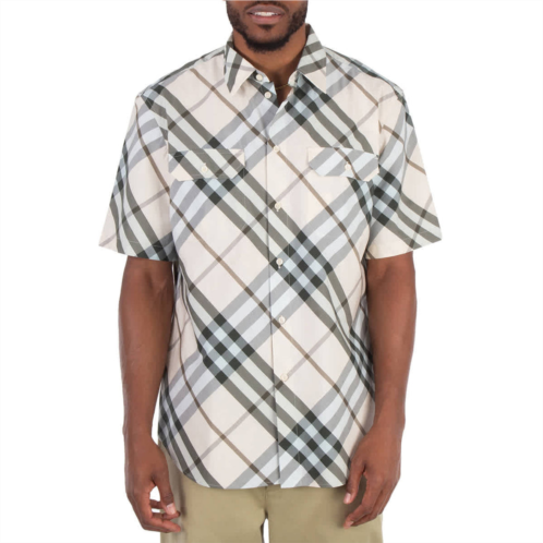 Burberry Men's Tops. Fashion category - Casual Button-Downs. SKU - 8087325. Color - Alabaster Ip Check. Burberry Check Cotton Shirt. Woven from cotton, this shirt features a button closure, a pointed collar, and flap chest pockets with button details. It has a curved hem and is finished with an all-over check pattern. 100% cotton. Made in Tunisia.