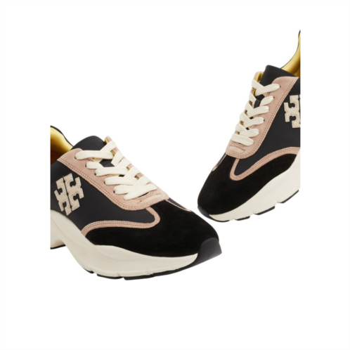 Tory Burch Ladies Sneakers. SKU: 83833-001. Color: Black. Tory Burch Good Luck Sneakers. These sneakers, crafted from nylon, suede, and leather with a mesh lining, feature a molded foam footbed, contrasting double laces, a supportive wishbone-structured cushioned midsole, and an ergonomic sole that enhances comfort. Material: Nylon, suede and leather. Please visit the brand website for sizing information.