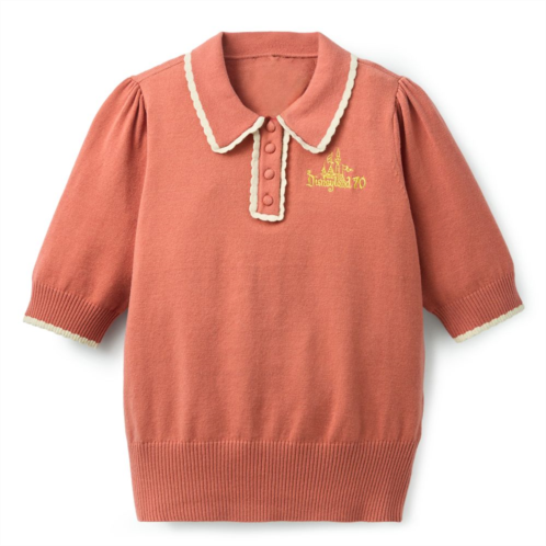 It's time to celebrate the 70th Anniversary of theDisneylandResort, and this vintagekorea sweater is the perfect piece to join in the festivities. It's knitted with scalloped lace trim around the point collar, partial button placket, and short sleeve cuffs. The embroidered ''Disneyland 70'' logo elevates the design inhonor the landmark occasion.
