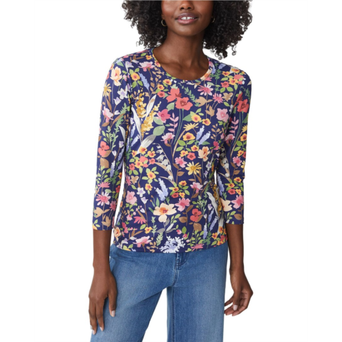 Introducing the J.McLaughlin Signature Tee Top, a chic addition to your wardrobe from the coveted brand known for their traditional sportswear with stand-out fabrics and prints. This top in navy/mulight 2 is designed with buttoned chest pockets and measures approximately 24 inches from shoulder to hem. Made with a blend of 91% nylon and 9% spandex, this top is easy to care for with a hand wash cold and lay flat to dry instructions. Imported for quality assurance, this top is a versatile piece for any woman's closet.