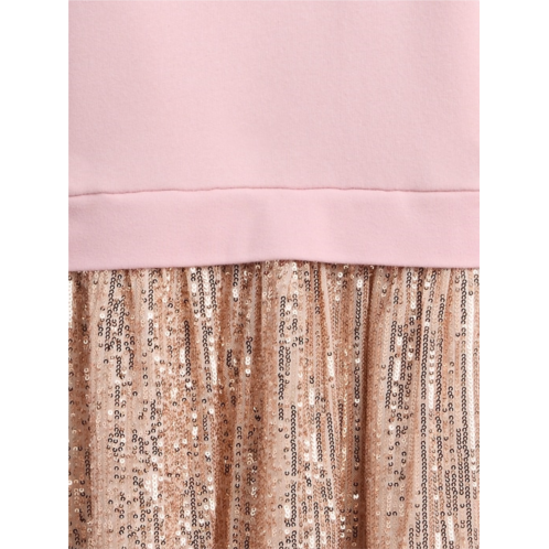- Comfy fleece sweatshirt, smooth woven skirt (select styles have allover sequins at skirt).
