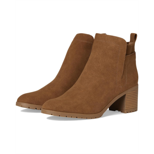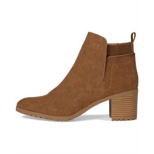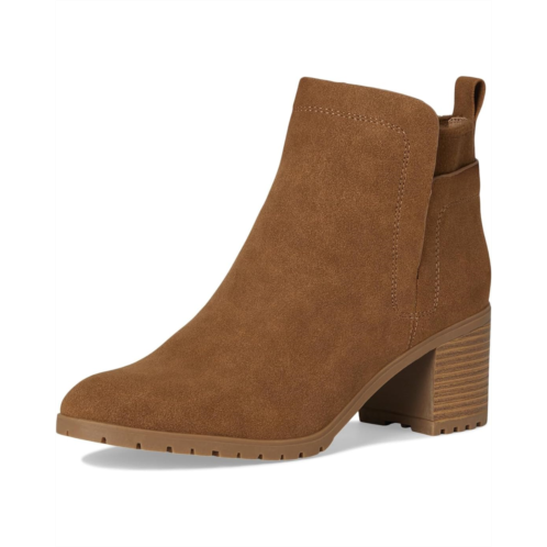 Smooth synthetic upper features open sides with a round toe.