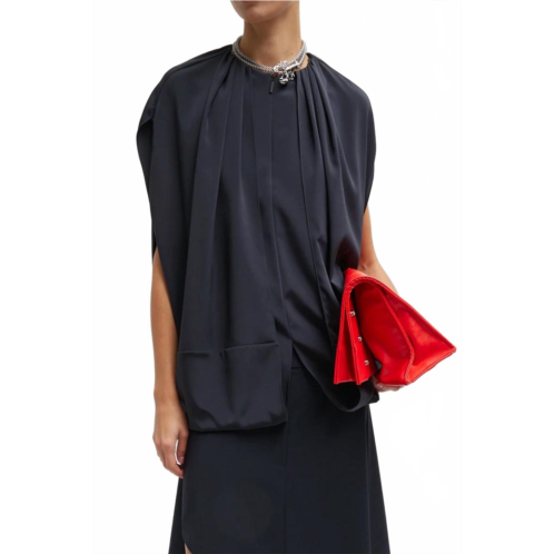 [US] Tibi stretch silk nylon cape top in navy blue