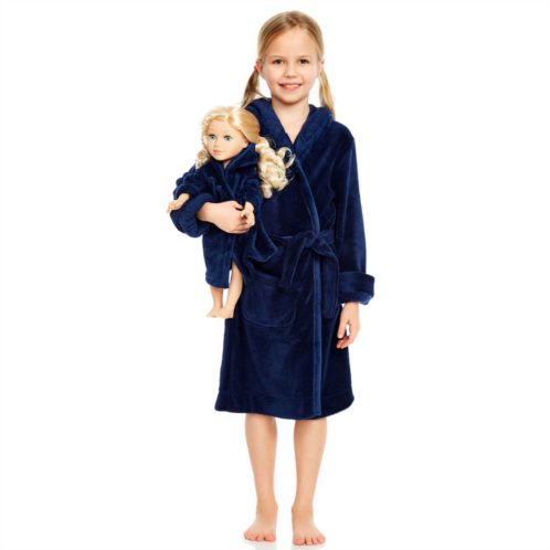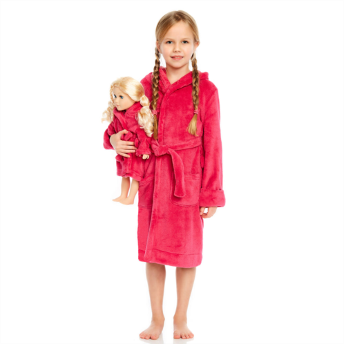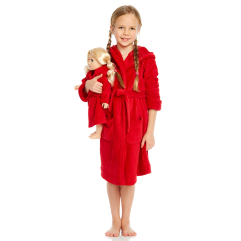 [US] Leveret girls and matching doll fleece hooded robe solid color