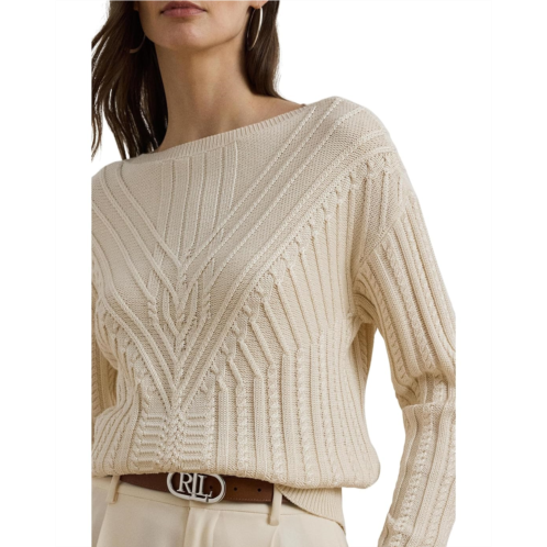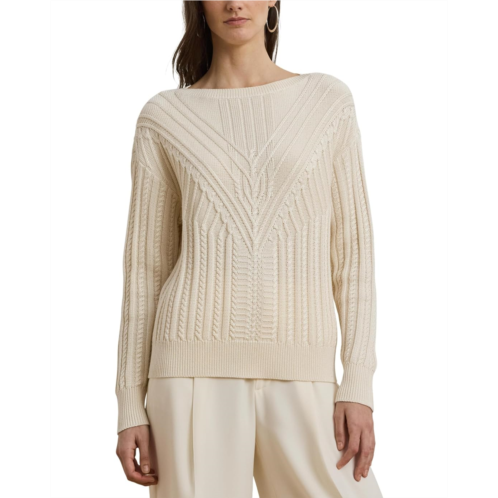 [US] POLO Ralph Lauren Womens Lauren Ralph Lauren Cable-Knit Cotton-Blend Boatneck Sweater