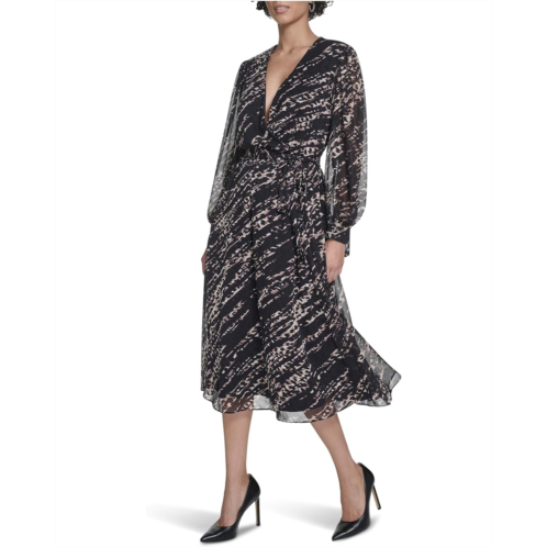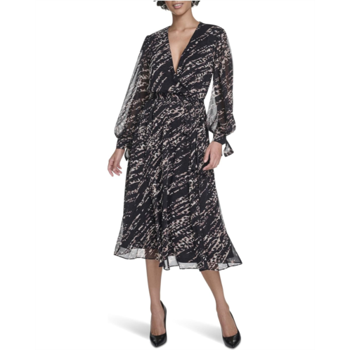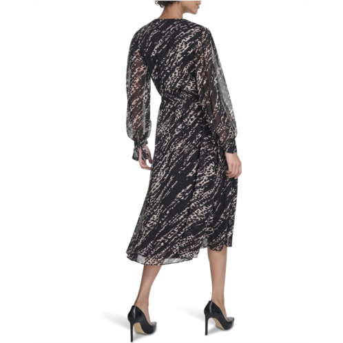 [US] Womens Calvin Klein Long Sleeve Chiffon Shirtdress
