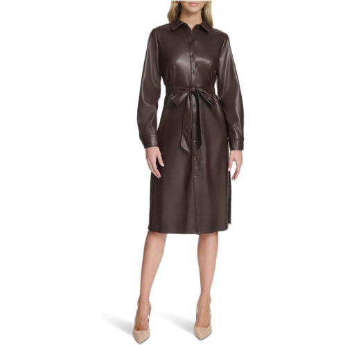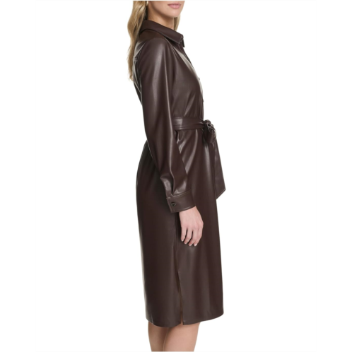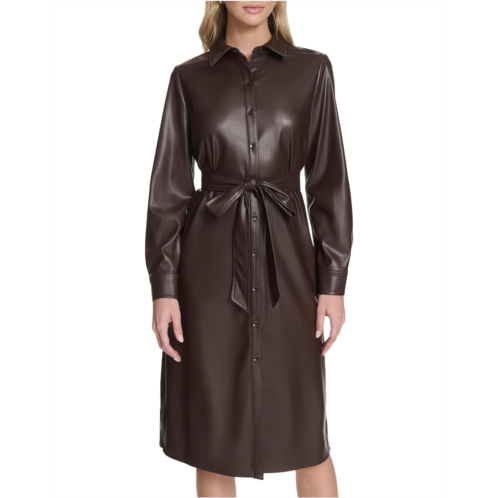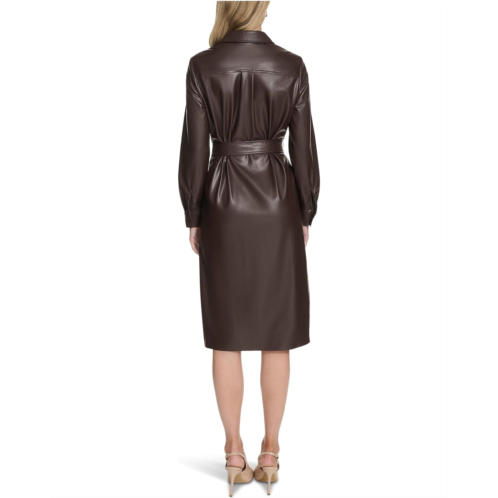 [US] Womens Calvin Klein PU Leather Shirtdress