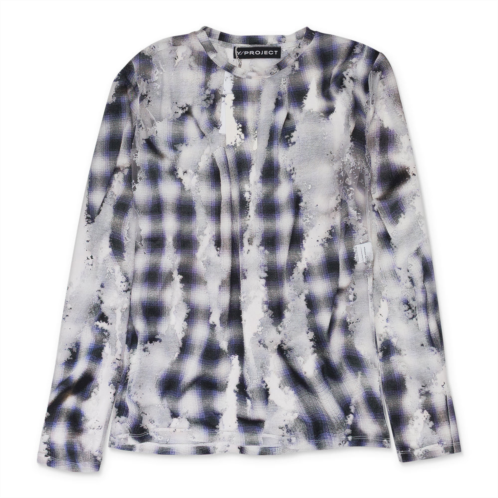 [US] Y/Project blue check long sleeve with devore effect t-shirt
