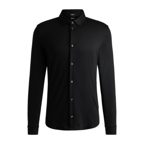 A modern shirt with long sleeves by BOSS. This piece is cut to a slim fit in cotton that's been mercerized for softness and sheen.