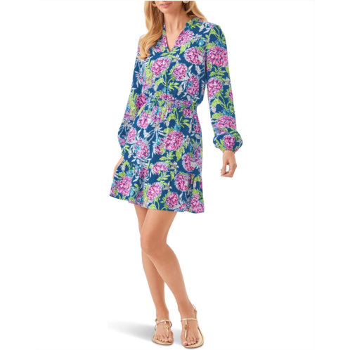 - Indulge in luxury wearing the Lilly Pulitzer Axton Dress. This easy-fit dress boasts a notch neck with a stand collar for a touch of sophistication. The smocked waist accentuates your silhouette, while the long sleeves offer a refined look suitable for any occasion. Finished with a playful hem ruffle, this dress combines comfort with stylish flair, making it a must-have for your wardrobe.
