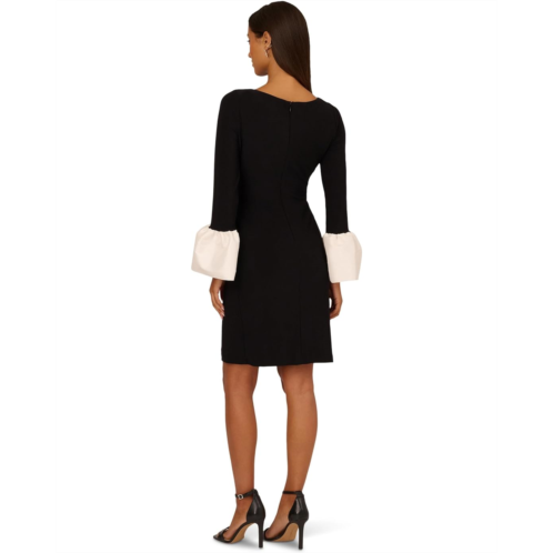 - The Adrianna Papell Short Dress With Cuff Detail is a chic and versatile cocktail piece featuring a sheath silhouette. It has a crew neckline, long sleeves with flared cuffs, and zippered center-back closure.