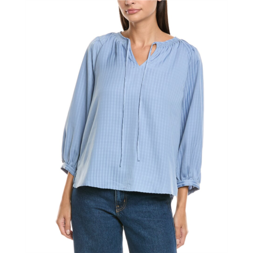 Introducing the Vince Camuto Peasant Blouse, a stylish and feminine addition to your wardrobe. This peasant blouse in French blue features puff sleeves, a high-low hem, and a self-tie front detail for a touch of elegance. With slip-on styling and made from 100% polyester, this blouse is both comfortable and chic. Whether you dress it up for a night out or wear it casually during the day, this Vince Camuto blouse is sure to make a statement. Machine washable and imported, it's easy to care for and perfect for any occasion. Feel confident, bold, and contemporary in this must-have piece from Vince Camuto.