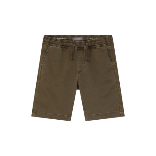 Introducing the DL1961 Jackson Short/TB Short in Army Green Stripe, the perfect addition to your little boy's wardrobe. This stylish short features matching herringbone tape at the side seams, a drawcord and elastic at the waistband for a comfortable fit. Made with 98% cotton and 2% Lycra, with a contrast of 52% polyester and 48% cotton, this short is not only fashionable but also sustainably-made. The slip-on styling makes it easy for your child to get dressed, and it is machine washable for convenient care. Imported from the renowned brand DL1961, known for their high-quality denim crafted with eco-friendly practices. Add the DL1961 Jackson Short/TB Short to your kid's collection today!