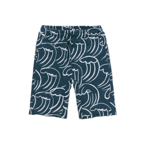 Introducing the Tea Collection Printed Vacation Short, perfect for your little adventurer. Designed with a Kanagawa Waves pattern, these shorts feature an elastic waist with a fully functional drawcord for a personalized fit. Complete with slash pockets and a patch pocket at the back, these shorts offer convenient storage for small essentials. Made from 100% French Terry Cotton, these shorts are soft and comfortable for all-day wear. Easy slip-on styling makes getting dressed a breeze. Machine washable and imported, these shorts are ready for your kid's next vacation or backyard adventure.