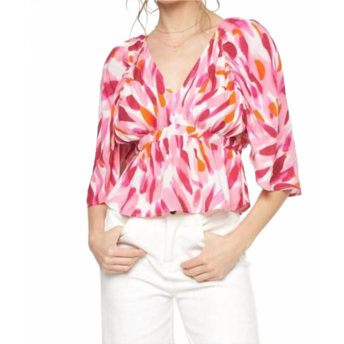 A timeless blouse that will never go out of style.The Entro Long Sleeve Blouse is a vibrant addition to your summer wardrobe, perfect for vacation or Valentine's Day. Featuring elbow sleeves and a patterned design, this pink, orange, and white blouse showcases a fashionable V-neckline. It is designed for women with a pull-on closure for easy wear. For best care, hand wash and line dry this maximalist piece.