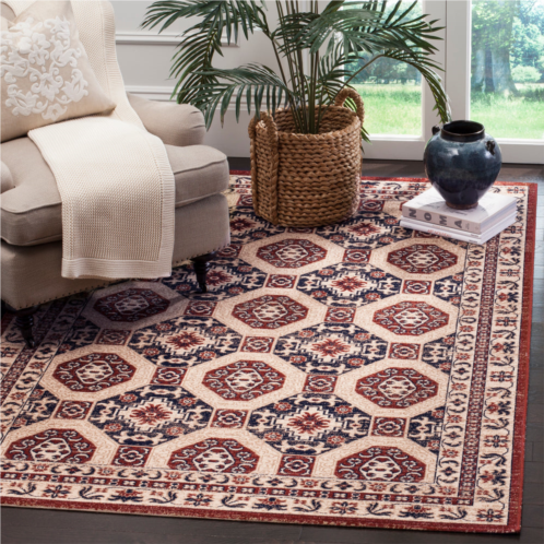 [US] Safavieh artisan machine made area rug navy / rust traditional style easy care
